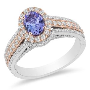 OvalTanzaniteand3/4CT.T.W.DiamondDoubleFrameEngagementRingin14KTwo-ToneGold